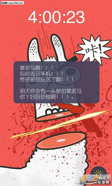 放下手机,不要玩死草泥马啊!草泥马就在你的手机里晃悠晃悠,你不需要喂养它。但是你每玩一小时手机,草泥马就会被插一刀,4小时之后就会毙命。放下手机,不要玩死草泥马啊!