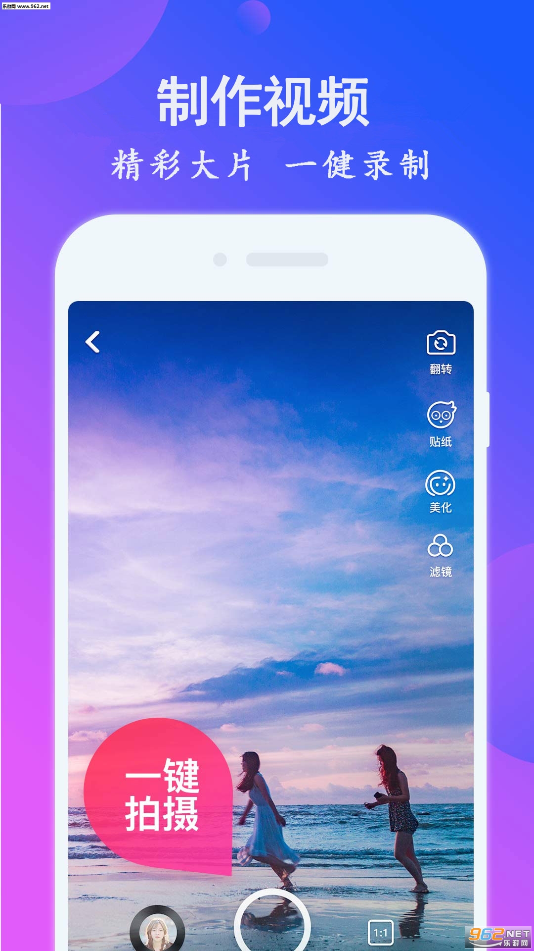 这是一款简单易上手的视频编辑软件,可以帮你轻松录制美美的短视频,同时也可以视频编辑,一个视频,多种表达。你用各种方式来表达自己,文字、配音、滤镜、剪裁、任何你想要的,都可以轻松搞定!