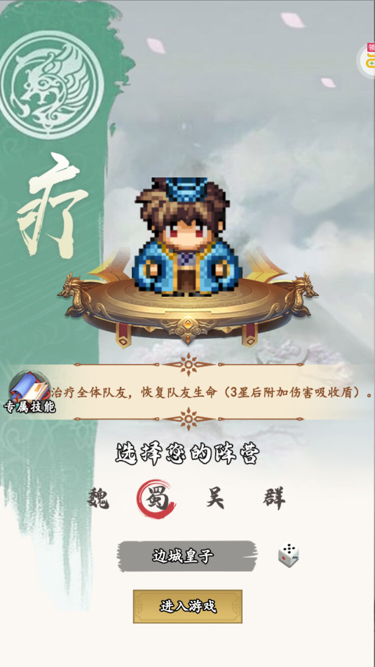 《三国仙侠志》是一款像素风格的回合制三国游戏,在这款游戏中玩家将来到三国世界中,不断挑战关卡收集武将。每个武将都有着不同的能力,搭配出各种有趣的技能。游戏中还有着多种玩法,和好友一起征战天下。同时游戏还有着0.05折的福利,现在就来试试吧!