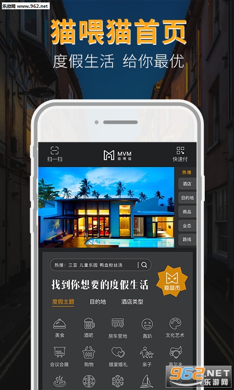 《MVM猫喂猫app》是一款一站式的度假生活服务类软件,能够帮助用户解决在度假生活中的各种问题,包括酒店,机票的预订,相关的美食攻略,旅行线路的制定等等,非常的实用方便,赶紧下载吧!