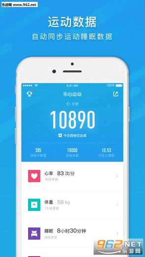 可记录查看运动健康数据,同步乐心全线智能设备数据,包括步数、睡眠、卡路里消耗、体重、跑步锻炼等;