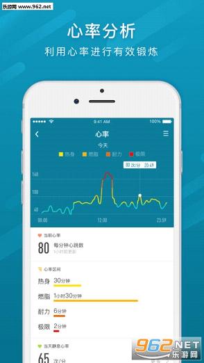 结合乐心智能手环/手表,实时记录动静态心率,并给出专业的心率层级分析;