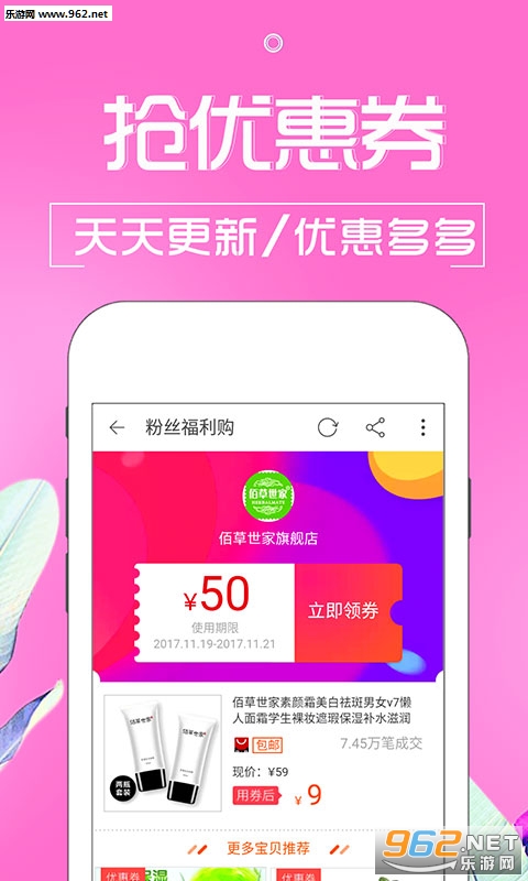 4、每天会更新上百款带有内部优惠券的商品,数量多,产品全,优惠券天天送!先领券,再下单,比别人少花钱!淘宝网省钱购物APP必备软件。