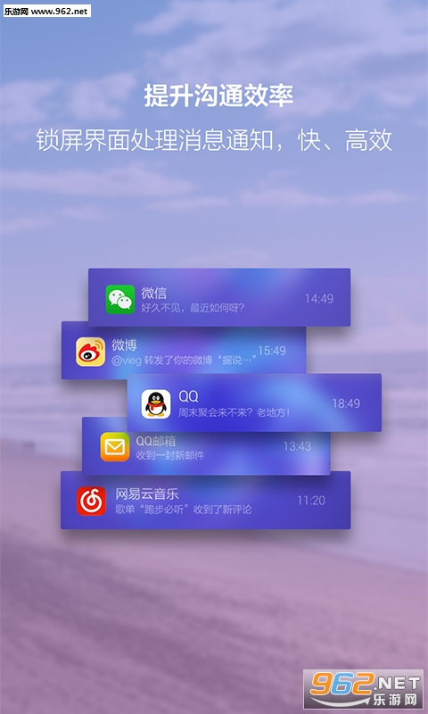 3.最及时的通知信息:锁屏界面显示您所关注的应用的通知信息,重要信息第一时间掌握。