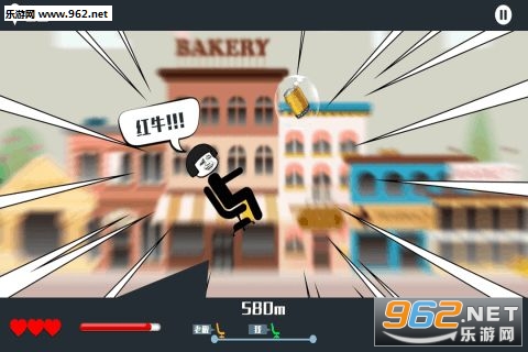 一个很任性的小游戏,游戏中的小人说不上班老板都拦不住。直接就开溜了,但是他跑了就没人干活了啊,所以老板使出浑身的解数去抓他回去上班。在路上有很多的汽车,开心跳过去就可以了,可以在空中使出二段跳。注意收集路上的红牛,可以给你补充能量。老板会随机出现用钱诱惑你,钱当然要捡但是小心被车撞。还会用键盘砸你,点击左边用你的屁股把键盘顶回去,看看你能跑多远才被老板抓回去上班吧。