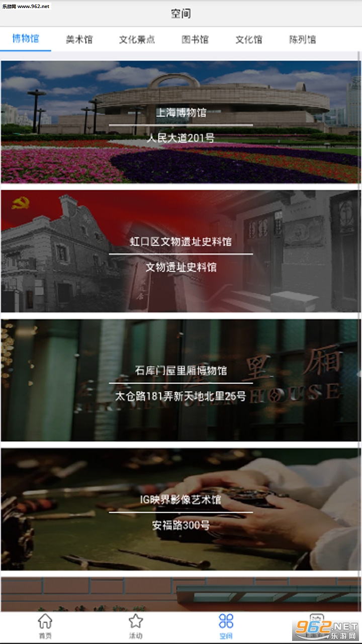 提供上海的各大场馆的基础信息,如博物馆、陈列馆、美术馆、图书馆等文化相关的场馆。用户可以查看场馆的介绍,历史,也可以电话咨询。