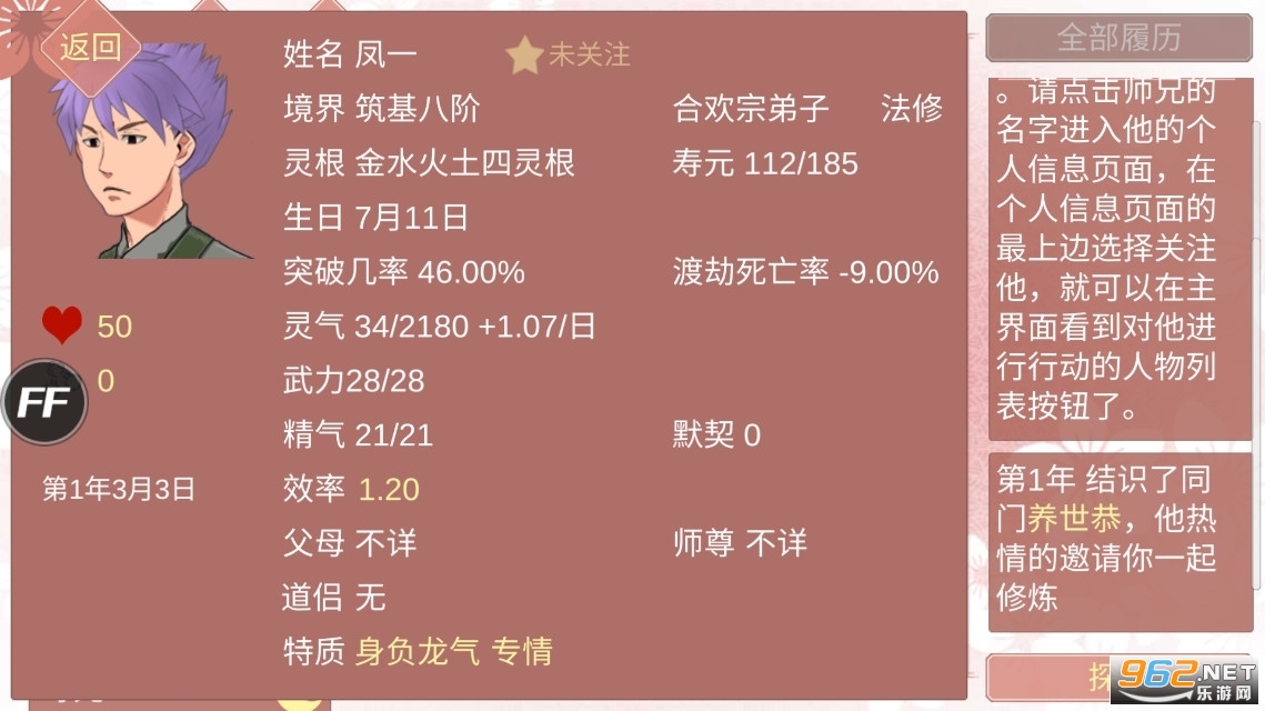 2、详细的游戏数据,玩家可以观察某某宗门的修行方式,其实可以猜出来是什么功法。