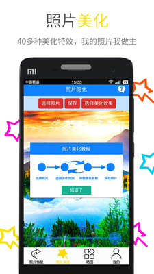 【照片美化】照片和图片美化功能,美化种类多包括50多种美化效果,根据用户需要,组合不同的美化效果,可以做出意想不到的图片美化效果你的天赋也学能做出比美图还漂亮的图片。