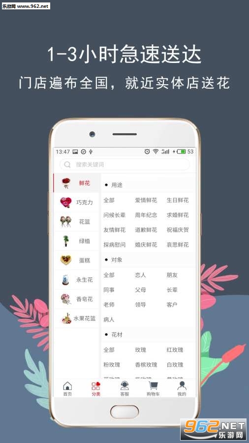 【超人速度——配送快】全国品牌连锁经营,3000多个城市,一键下单,同城鲜花最快1小时送达,幸福无需等待。