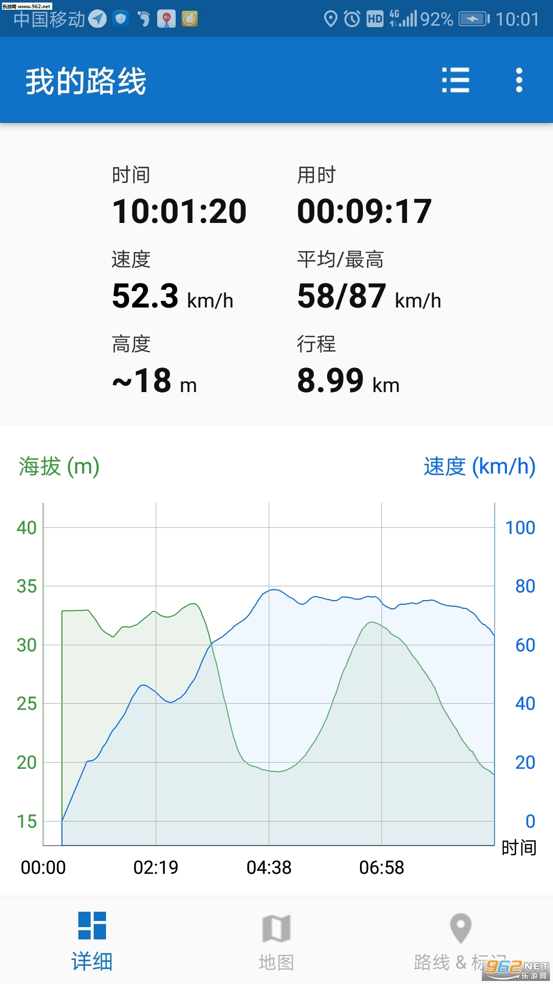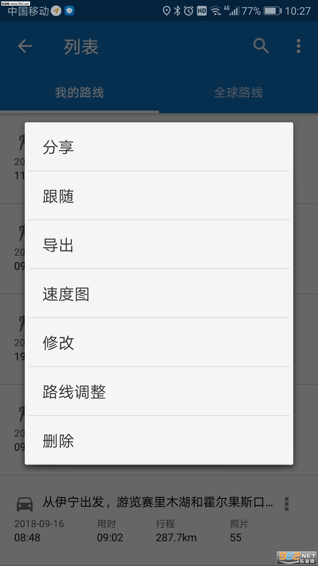 可分享、删除、重命名、显示速度图及导出路线;