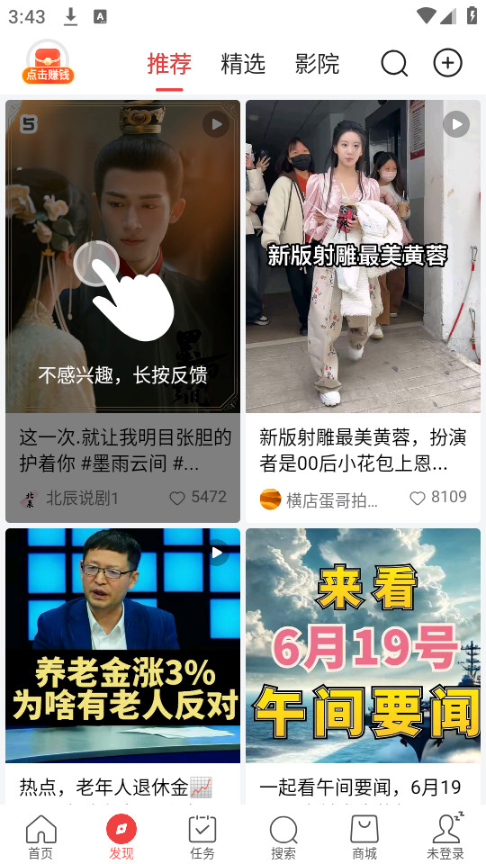 热点资讯应有尽有——智能算法推荐你感兴趣的信息、无数明星大V在这里跟你互动;