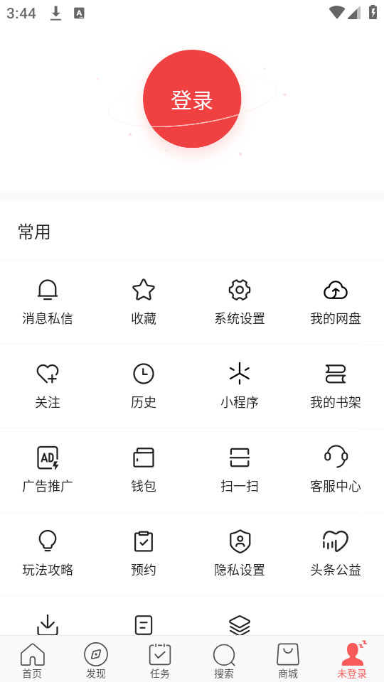 1.下载安装并打开今日头条极速版app,点击【未登录】