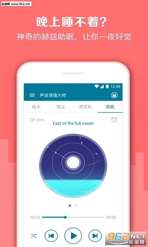 专业的睡眠辅助类产品。轻松地助眠曲,充满大自然的声音,让你阻隔外界的一切噪音和喧闹,身体仿佛置身于催眠的岛屿中,脑中困意来袭,眼皮慢慢的合上,短时间内变进入了睡眠状态。