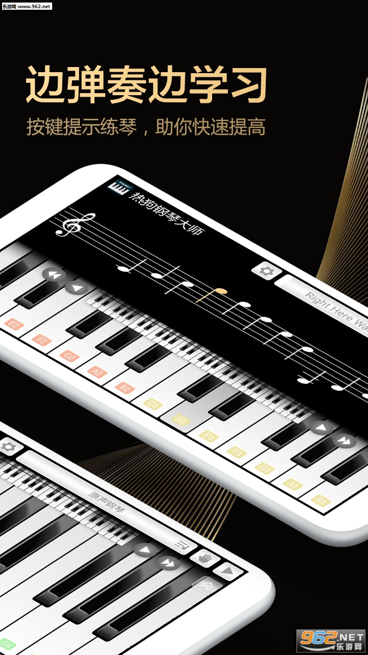 热狗钢琴大师-钢琴陪练(finger piano)是一款智能钢琴模拟器乐器,内置真实的钢琴音色,它能把你的手机变为一架微型智能钢琴,帮您学钢琴,钢琴练习,了解钢琴谱,认识钢琴教学。