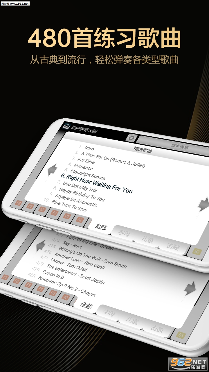 多种钢琴歌曲音乐演奏曲可以播放和学习