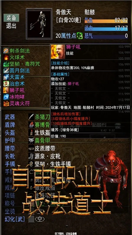 在遥远的沃玛大陆,一个被遗忘的角落,光明与黑暗的界限模糊不清,一个关于勇气、重生与不朽的传奇正悄然上演。《傲天骷髅传》带你踏入一个前所未有的奇幻世界,在这里,玩家将扮演一名非凡的骷髅战士,踏上一场逆天改命、征服万物的冒险之旅。