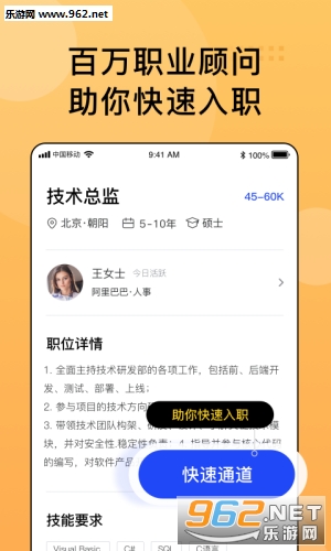 详细的行业分类,满足企业所有用工需求,岗位推送功能,让您在最短的时间里招到人。