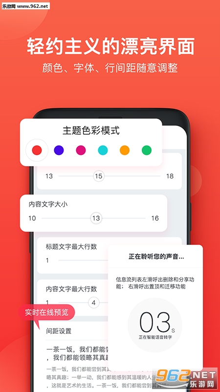 3. 信息流文本字号字间距自由控制,极大限度的满足您对记事体验的延展需求;