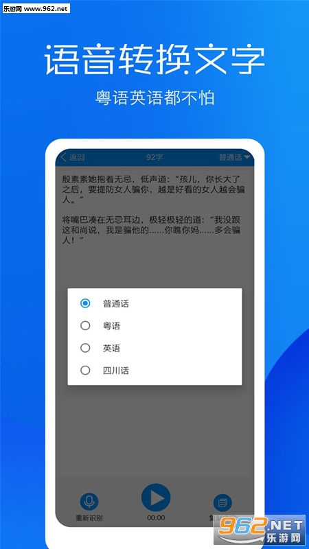 6.语音转文字:支持普通话、粤语、英语、四川话,可以边录音边转换,语音转文字方便快捷精准,录音转文字的好助手;