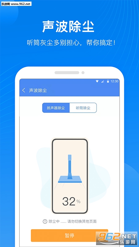 手机用过一段时间后扬声器会吸附很多灰尘或其他粉末,从而阻塞手机音量传播,导致音量变小,声波大师利用声波赫兹共振原理,把灰尘、粉末等垃圾清理出来,还原手机原始音质。