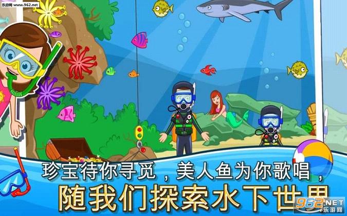 让我们去潜水吧! - 请务必造访商店,穿上潜水呼吸器。 在海底世界中,你会发现唱歌的美人鱼、遗失的珍宝箱和海洋深处的三头怪! 使用吊车从海底发现珍宝并抬出水面!