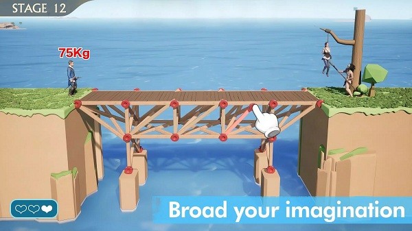 + 游戏将以战争为背景,为了获得物资的补给、盟友的援助,国家将委派你作为“桥梁构造者”,搭建不同的桥梁,为战争做准备。