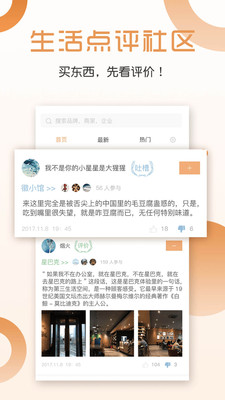-生活点评社区——可查看近期网友点评的商品和商家,作为消费参考。