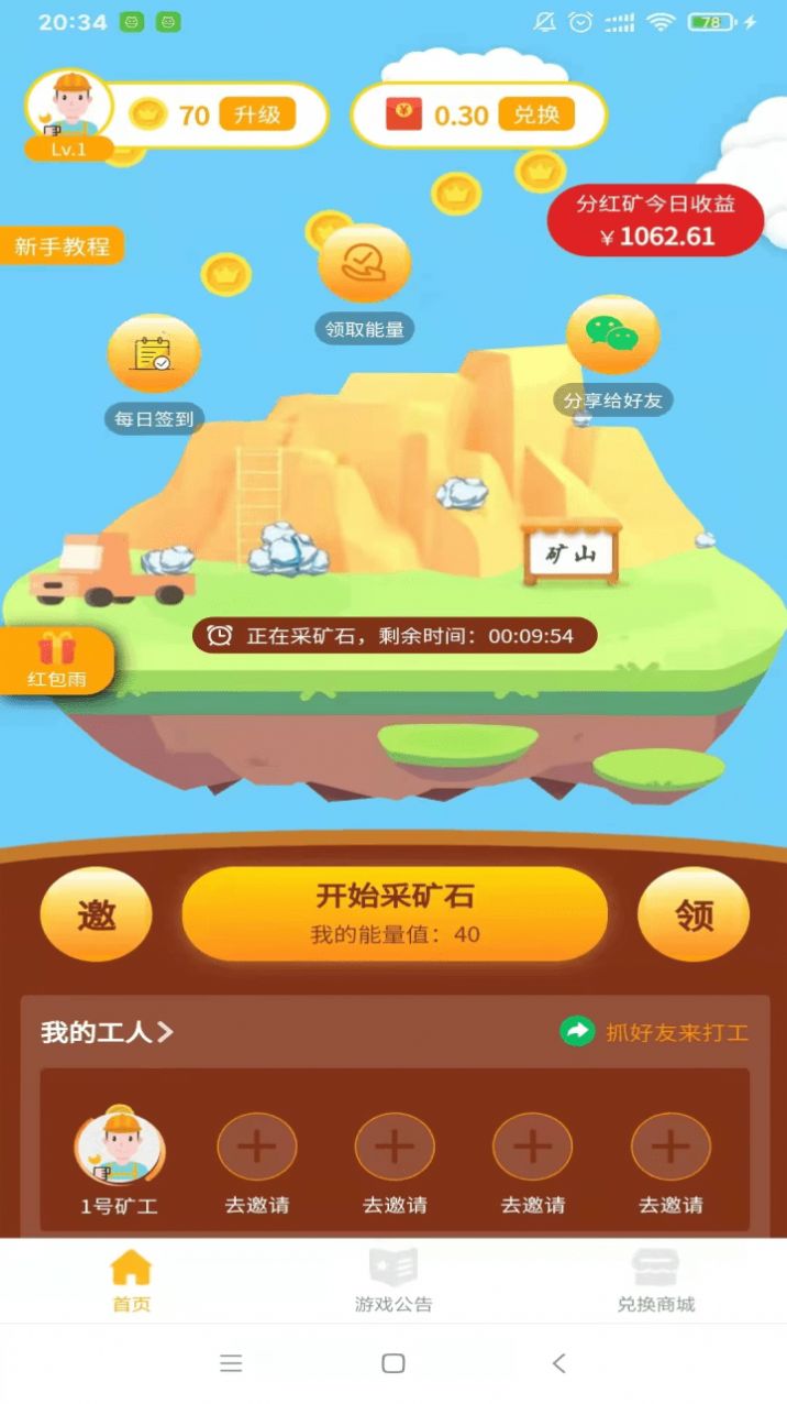 3、招募到更多的工人一起开采矿石,你能收集到更多珍贵的不同矿石。