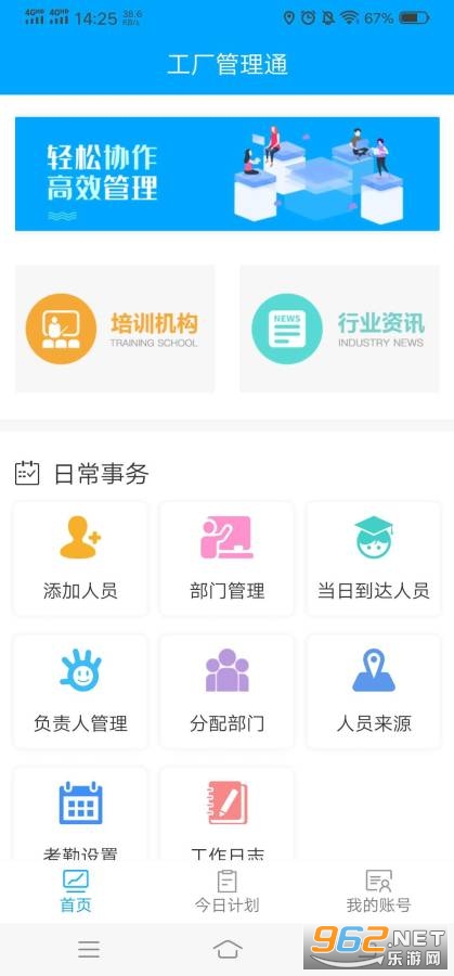《工厂管理通》是一款专业的工厂管理软件,为工厂提供智能化的管理模式,同时还有着专业的培训功能,不断的提高工作效率,同时还有着丰富的打卡功能,帮助整个工厂进行管理,软件的操作简单容易上手,赶快下载体验吧!