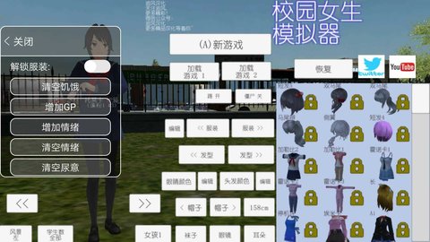 校园女生模拟器内置修改版这个版本中加入了mod菜单,可以随时开启关闭来修改游戏属性解锁全部校园内容,而且还完成了中文汉化。游戏中,玩家将会成一名女高中生,体验到超自由的游戏玩法,玩家可以先进行捏脸,更换各种服饰,打造一个全新的游戏角色,游戏中会有海量的游戏道具,诸多的游戏任务,多种游戏模式。