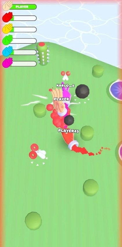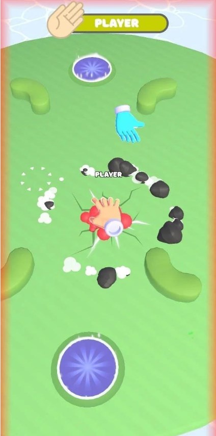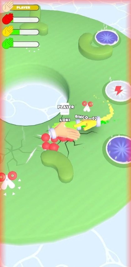 3、在竞技场中寻找可以打败的对手,收集场中的道具改变手势或更强力有用的道具,成为竞技场中的第一名。