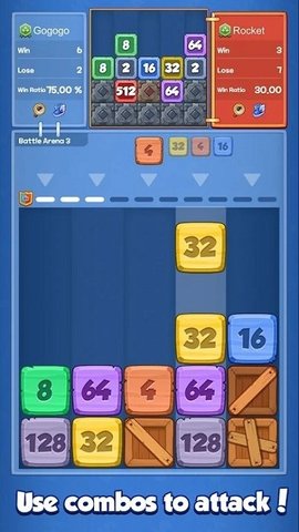 2048合并战斗是一款非常好玩的休闲合成游戏,游戏里面玩法内容非常丰富,游戏操作简答易上手,玩家需要将多种不同的方块进行合成即可,合成数字不断变大,也会给对手造成伤害,游戏关卡任务非常丰富,每一个关卡都能给玩家带来不一样的游戏乐趣,完成任务会获得丰厚的游戏奖励,还能解锁更多的道具,感兴趣的小伙伴快来下载吧。
