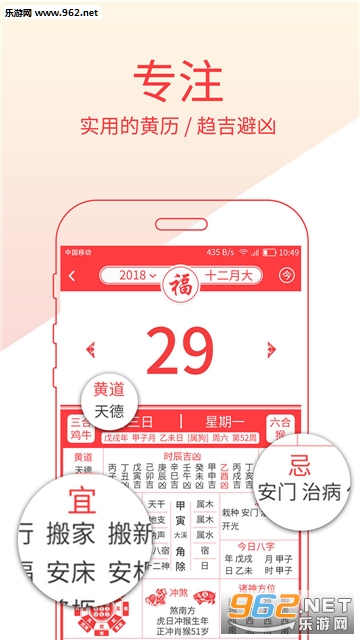 这款APP界面清爽,操作简单,而且还有详细的黄历,用起来非常顺手哦!