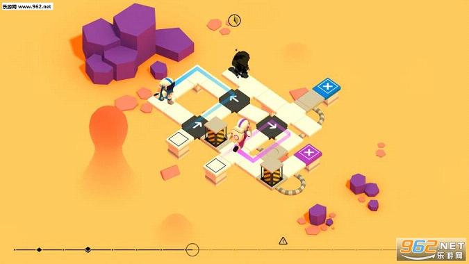 游戏的背景故事被设置在一个遥远的外星国度,老套的剧情再次发生,倒霉的宇航员又搁浅了,玩家要做的依旧是引导宇航员找到出口,逃离被困之地。游戏的场景由瓷砖铺设,并不断交叉重叠,眼前的景象似乎美不胜收,但同样存在着致命的因素。 在寻找出路的途中,会出现很多关键的按钮以及箭头,玩家要根据提示找寻正确的方向。所幸的是,玩家并不是一个人在战斗,通过场景中神奇的传送点可以复制出一个过去的自己,因此玩家可以操控多个“自己”解决难题。