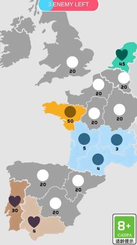 3、利用手中有限的兵力消灭敌人,占领关卡内的全部领地。