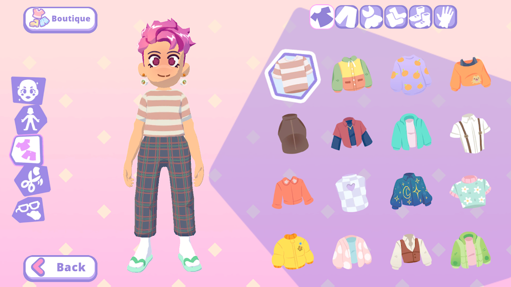 还有一些最新的时尚乐趣怎么样?想着要不要尝试朋克摇滚风格的定制服装?优雅时髦的服饰呢?或许你更倾向于“兔子连身衣”团队?定制你的新数字朋友,展示他们耀眼的风格!玩弄你的虚拟朋友的外貌,并记得在屏幕周围轻点,让他们知道你有多在乎。