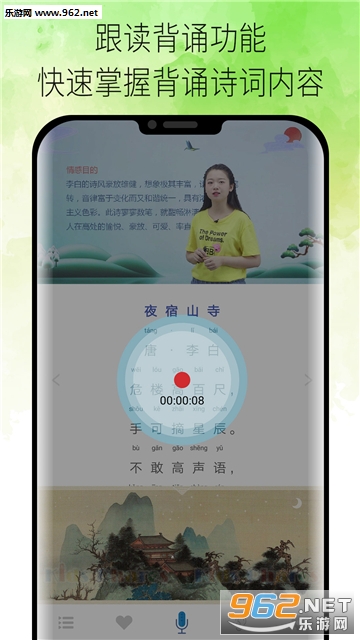 2.古诗诵读、古诗理解、诗句鉴赏、诗词跟读功能全包括,提升古诗鉴赏、背诵能力;