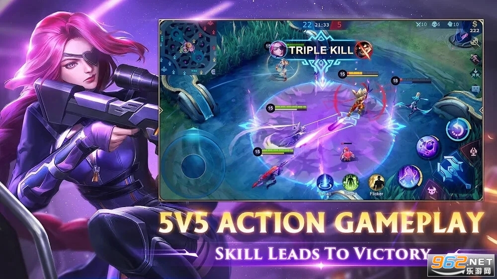 2.真人5v5即时战斗,三路兵线推塔、4处野区、18个防御塔、2个野外BOSS,经典MOBA地图完全重现。完整5v5真人战斗,还原最真实的经典MOBA玩法。