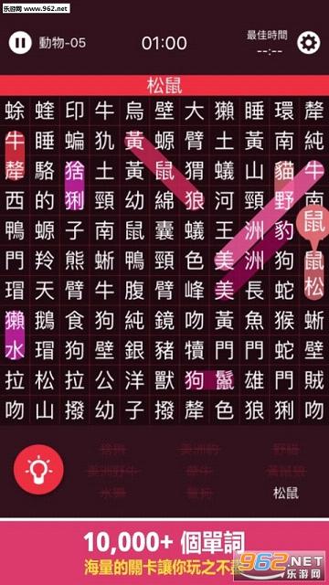 画面清新简洁,玩法更是简单,只需照词表找出屏幕中隐藏的单词。