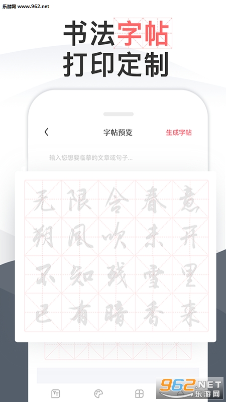 毛钢字帖是一款手机生成字帖的工具。涵盖毛笔字帖、钢笔字帖,内置多款书法家字体,可自主选择田字格、米字格、方格、回字格生成Pdf字帖模板,通过电脑下载字帖模板打印后临帖。