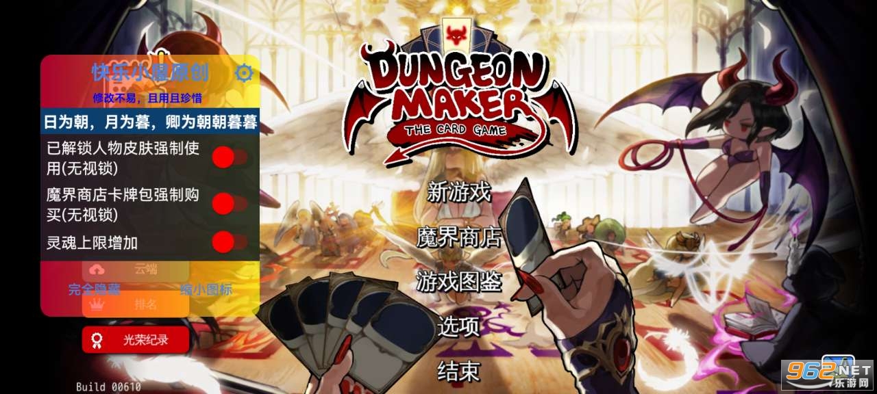 《地牢制造者内置修改器破解版》为大家带来超爽快的地牢制造者破解版本,在这个版本中玩家可以游玩dlc卡牌模式,同时强制解锁所有的皮肤,还有着丰富的功能可以自由的选择,让你体验地牢制造者真正的乐趣,赶快下载体验吧!