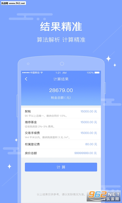 计算结果:本计算器计算方式参照了链家、搜房、新浪乐居等多个专业公司机构,结果技术精准,程序由多名高级工程师开发研制,反应快,内存占用小。