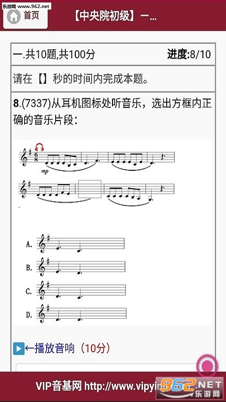 《VIP音基安卓版》是北京卓亿创新技术有限公司推出的一款音乐学习软件,主要为音乐学院的学生打造,有着乐科一级、二级等不同级别的题目可以训练,在线模拟考试等。
