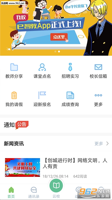 《e智教学生端》是重庆联和纵科技股份有限公司推出的一款学生服务管理软件,小伙伴们可以在e智教app中看到一些学校的通知,还可以在线请假查看自己的成绩等。