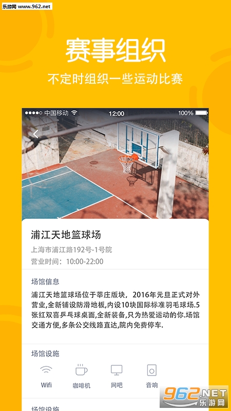 2.根据您的需求,基于LBS定位系统快速为您就近推荐优质体育场馆,让您迅速一键搞定体育场馆,随时随地给无聊的生活增添乐趣,远离亚健康搏击人生新高峰。