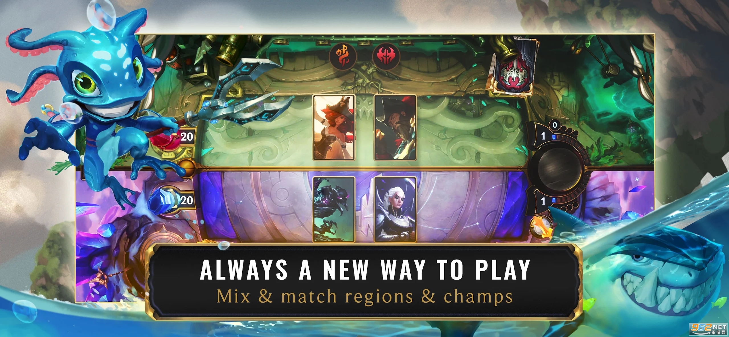 以英雄联盟宇宙为背景,在《符文大地传说》策略卡牌游戏中,你需要技巧一流、天马行空、脑力全开才可以克敌制霸。召集你的英雄阵容,组合不同区域的卡牌,利用其独有的战斗风格和战略优势,打造遇神杀神、佛挡杀佛的完美牌组。