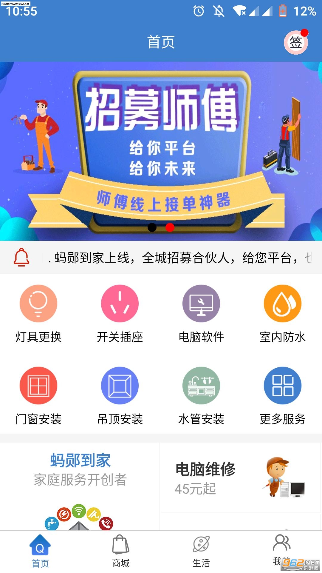 一站式便民服务平台,移动互联网家庭服务开创者 .致力于一站式解决家居类维修,回收,清洗,家政服务以及家庭教育,附加惠民商城,日常生活类充值,洗车等综合便民服务平台,家居,家政,家修,更轻松,更方便,更快捷