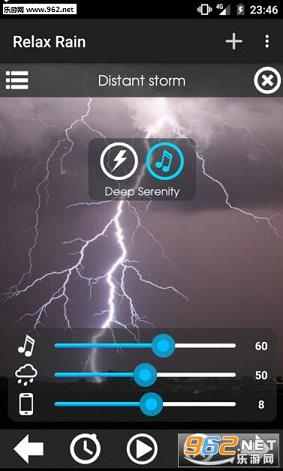 点击闪电图标和音乐图标就会增加打雷声音和音乐的声音了
