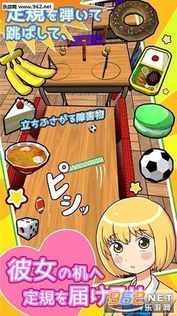 让尺子弹起,穿越一个又一个障碍,准确抵达少女的桌子!途中遇到无法沟壑可以让尺子跳起来越过!