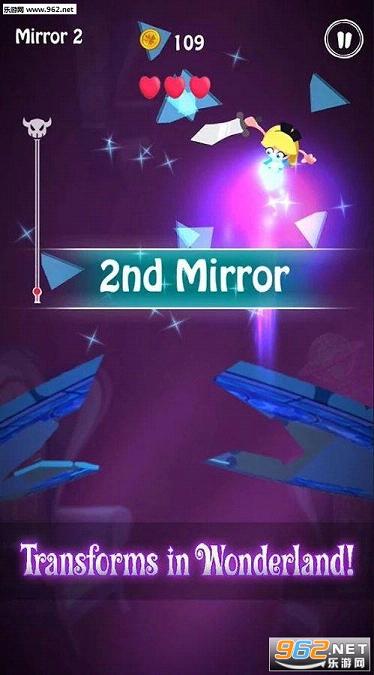 游戏中,敌人不断地从底部跳出,爱丽丝需要打败他们来避免自身下坠,最终从镜子中逃出。